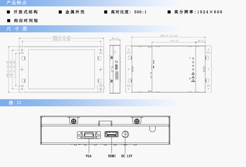分 辨 率 | 1024RGB(寬)×600(高) | ||