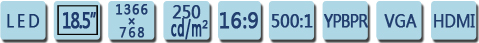 輸入信號:RCA Video×2,RCA Audio×1,VGA×1,HDMI×1,YPBPR×1